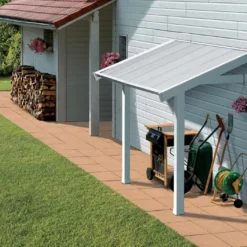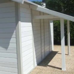 Votre auvent en PVC de chez Grosfillex est de fabrication française. Il a Ă©tĂ© spĂ©cialement conçu pour s’adapter aux abris Deco 7,5 – Deco 11 – Utility 7,5 et Utility 11 mais peut Ă©galement se mettre contre une façade d’habitation. Les poteaux sont blancs et le toit est gris vert. Ses dimensions sont 2,22 x 1,19 x 1,41 m (l,l,h). La hauteur sous toit maximale pour installer votre auvent est de 1,88 m. Il couvre une surface de 2,64 m². Le toit est inclinĂ© Ă 20°. Le auvent ne peut ĂŞtre vendu qu’avec un abri Grosfillex. Votre auvent est garanti 10 ans.