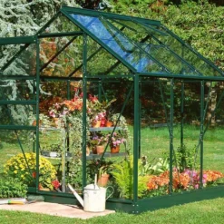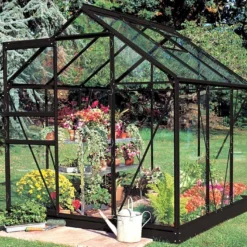 La serre de jardin Popular 66 de chez Halls est idĂ©ale pour les petits jardins. Elle n’occupe en effet que peu d’espace, Ă savoir 3,8 m², mais vous permettra de cultiver vos fruits, lĂ©gumes et autres vĂ©gĂ©taux dans des conditions optimales. Sa solide structure en aluminium accueille des panneaux de verre horticole de 3 mm d’épaisseur.Â