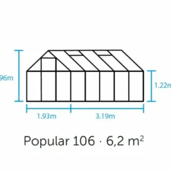 Comme évoqué plus haut, cette serre en verre possède une solide structure en alu, un matériau qui, en plus de sa robustesse, possède l’avantage d’être insensible à la rouille, et ce sans exiger de traitement ou d’entretien particulier. Cette structure mesure 1,93 x 3,19 m, ce qui permet à la serre de n’occuper que 6,2 m², des dimensions idéales pour les extérieurs de petite ou moyenne superficie ! A noter qu’une embase en acier est disponible dans l’onglet « Accessoires », pour la stabilité optimale de votre installation.