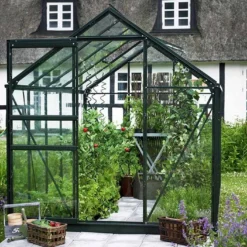 La serre de jardin Popular 106 de chez Halls est dotée d’une armature en aluminium proposée dans trois finitions différentes. Vous pourrez alors choisir le coloris qui s’intègrera le plus facilement dans votre jardin ! Idéale pour la culture de plantes, de fruits ou de légumes, cette serre est équipée de parois en verre trempé de 3 mm d’épaisseur. Plus solide que le verre horticole traditionnel, ce type de vitrage assure une excellente transmission de la lumière naturelle et une bonne conservation de la chaleur.