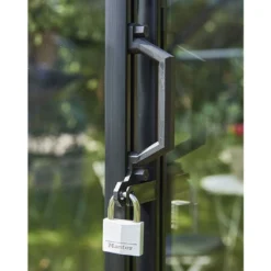 Cette serre en verre est équipée d’une lucarne de toit de 60 x 55 cm permettant d’assurer la bonne aération de votre installation. Elle dispose également d’une porte coulissante de 60 cm de large qui, une fois ouverte, pourra elle aussi contribuer à une meilleure ventilation de la serre, surtout l’été en cas de grosses chaleurs. Cette porte pourra par ailleurs être verrouillée à l’aide d’un cadenas si souhaité. Notez enfin que cette serre est livrée en kit et qu’elle devra être montée par vos soins.