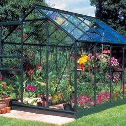 Avec des dimensions de 1,93 x 2,57 m (largeur x longueur), cette serre de culture se montrera idéale pour les petits jardins. Elle n’occupera en effet que 5 m² mais vous offrira tout de même suffisamment d’espace pour faire pousser fleurs, fruits et légumes. Ses vitrages en verre trempé de 3 mm d’épaisseur, parfaitement transparents, garantiront une transmission optimale de la lumière naturelle, assurant ainsi de bonnes conditions de culture. Ils témoigneront de plus d’une meilleure résistance aux chocs que les vitrages en verre horticole.