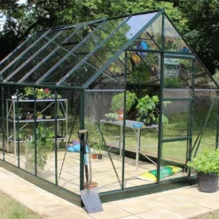 Les parois de cette serre sont fabriquées en verre trempé. Elles affichent une épaisseur de 3 mm et permettent d’assurer une bonne isolation thermique, idéale pour les espèces de végétaux sensibles aux variations de température. Le verre trempé est également plus solide que le verre horticole et se montrera plus résistant en cas de choc, minimisant ainsi les risques de casse.
