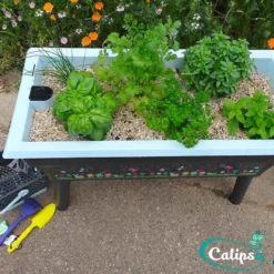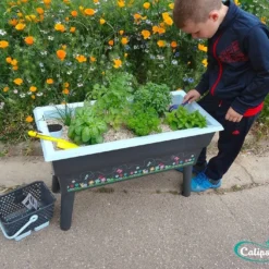 Parfaitement équipée, cette jardinière est pensée pour les enfants mais elle n’est pas un simple jouet. Elle bénéficie de la même qualité qu’une jardinière pour adulte puisqu’elle dispose d’une cheminée d’aération et d’arrosage latérale, d’un contrôle du niveau d’eau, d’un système de trop plein, d’une réserve d’eau, d’une double paroi et d’une contenance totale de 40 litres.