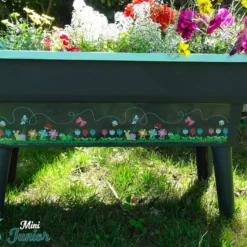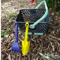 La jardinière pour enfant de Calispo est ici présentée dans sa version grise et vert pastel. Il s’agit d’une véritable jardinière, aussi fonctionnelle que celle d’un adulte mais avec des dimensions adaptées aux enfants et des accessoires spécialement conçus pour eux.