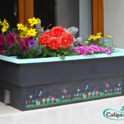 La jardinière est fabriquée en France, en polypropylène. Le polypropylène ne craint pas la moisissure, les insectes et peut rester dehors toute l’année. Il ne craint pas non plus les variations de températures ni le soleil. Il ne demande pas d’entretien et il est particulièrement solide, idéal pour les enfants.