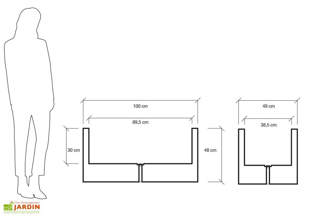 La jardinière Atlantis de Farmet New mesure 100 cm de longueur, 49 cm de largeur et 48 cm de hauteur. Elle est en polyéthylène rotomoulé double paroi, un matériau particulièrement solide qui ne craint pas les agressions extérieures. La jardinière est insensible à la moisissure, aux insectes, à la corrosion, elle ne craint pas les UV, les variations de températures ni les chocs.
