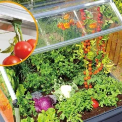 La mini serre Plant Inn de chez Palram-Canopia est dotĂ©e d’une solide structure en aluminium et de parois en polycarbonate transparent. Les panneaux de polycarbonate laissent ainsi passer plus de 90% de la lumière naturelle tout en filtrant les rayons UV. Ils sont Ă©galement traitĂ©s anti-UV, et ne donc dĂ©coloreront pas. Notez enfin que le polycarbonate est un matĂ©riau extrĂŞmement rĂ©sistant, notamment aux chocs et intempĂ©ries, et qui ne demande aucun entretien particulier.Â