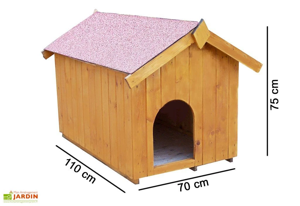 Cette niche Habrita est fabriquĂ©e en bois brut qu’il est recommandĂ© de lasurer. Il est certifiĂ© FSC, respectueux de l’environnement. Les panneaux en Ă©picĂ©a ont une Ă©paisseur de 16 mm. Le toit dispose d’une couverture bitumĂ©e pour mettre votre chien Ă l’abri de la pluie et garder la niche Ă©tanche. Le plancher permet d’isoler la niche. La niche mesure 110 cm de longueur, 70 cm de largeur et 75 cm de hauteur. La niche est Ă monter vous-mĂŞme, elle est livrĂ©e avec la visserie en inox nĂ©cessaire. La garantie est de deux ans.