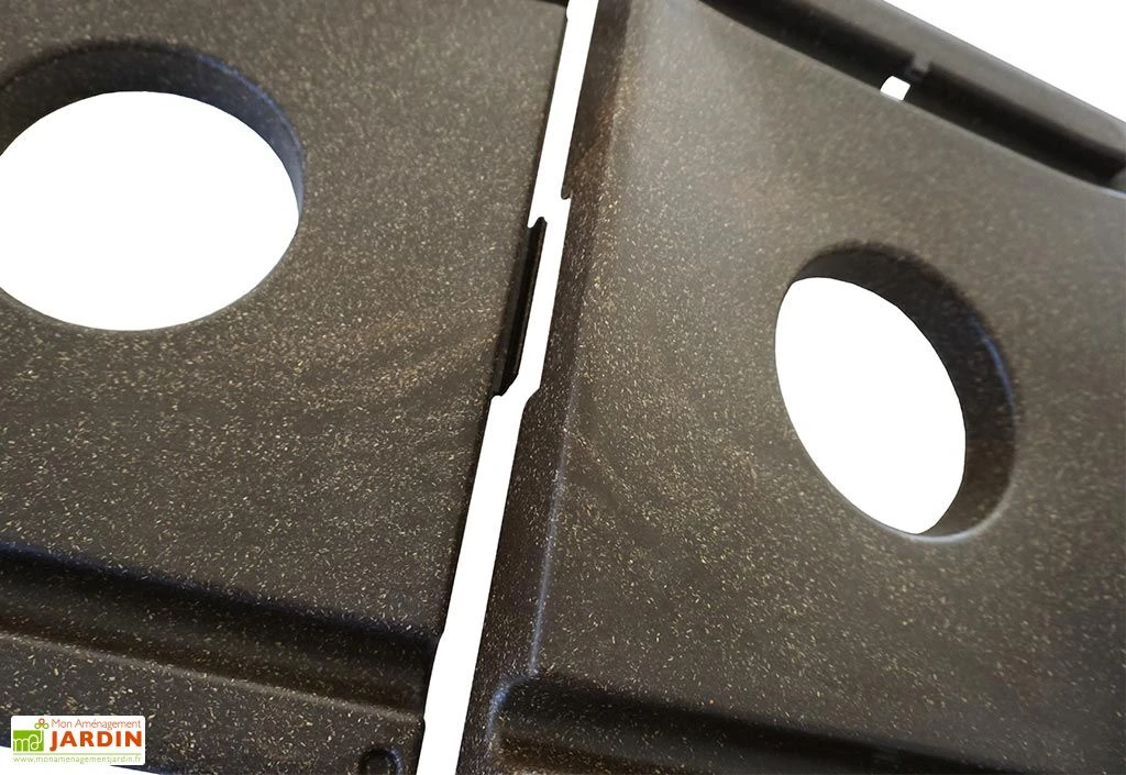 Ces plaques de culture rigides sont fabriquées en polypropylène recyclé et en fibres de bois bio. Elles sont donc recyclables et leur coloris brun leur assure une intégration plus facile dans votre jardin, serre ou potager. Ce coloris opaque permet en outre de limiter le passage de la lumière, ce qui évite la pousse de mauvaises herbes, et donc le binage destiné à supprimer ces herbes adventices.