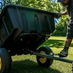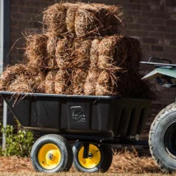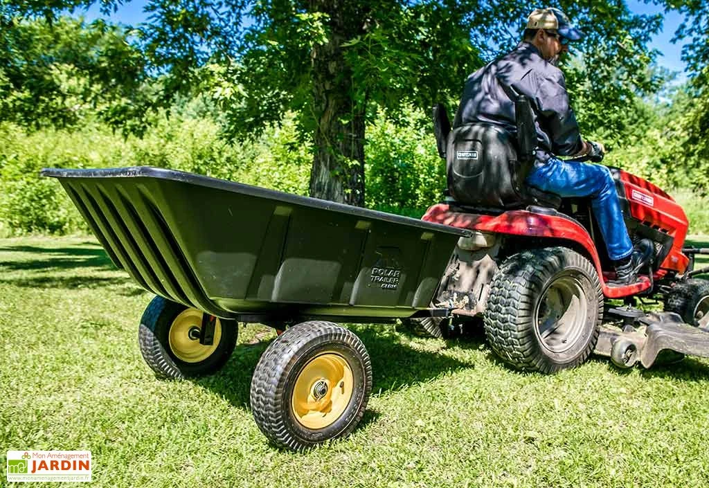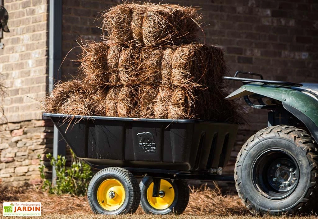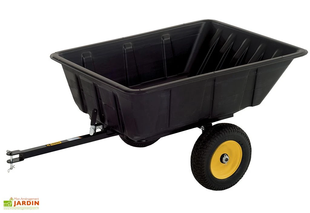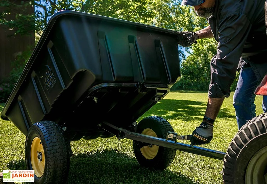 L’avantage de cette remorque réside dans le fait que son bac peut être basculé et verrouillé en arrière pour pouvoir le décharger facilement et de façon ciblée. Ses dimensions sont de 175 x 94 cm ce qui lui offre une capacité de 283 litres. Ce dernier est composé de polyéthylène, ainsi, la remorque ne craint pas les chocs ou même la rouille. Elle sera également facile à nettoyer à l’occasion.
