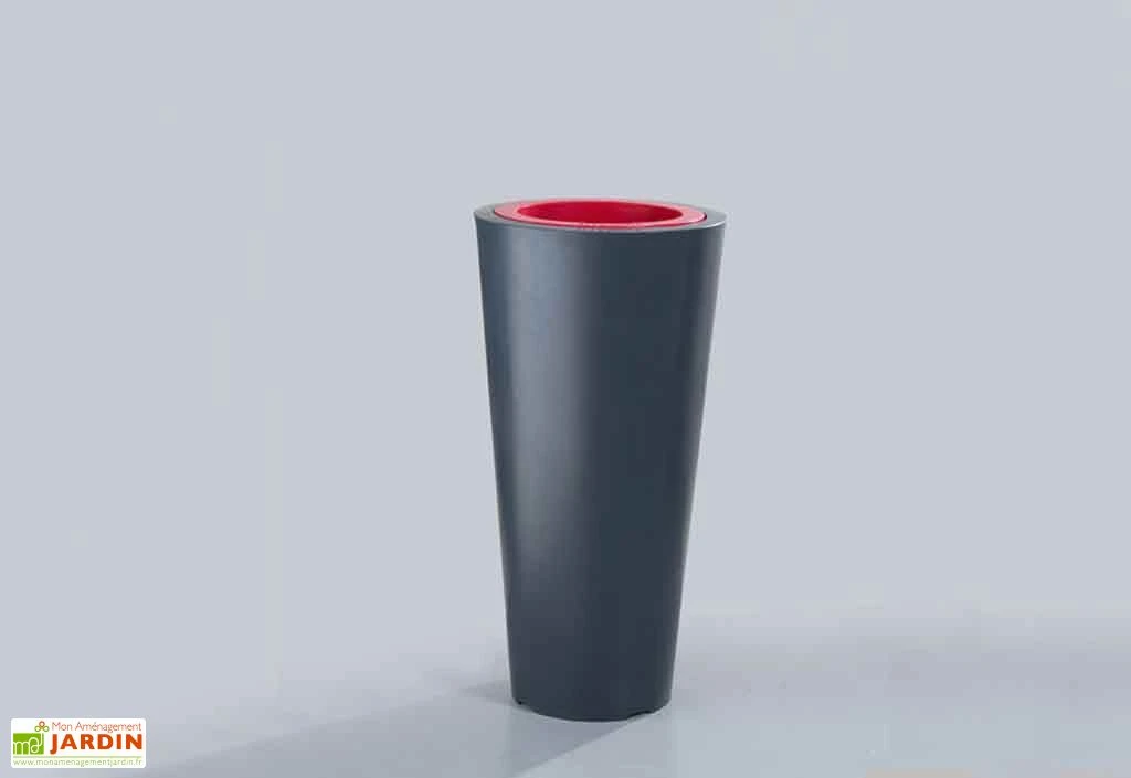 Si le principal avantage du pot de fleurs à double paroi repose sur la réserve d’eau qu’il offre à vos plantes (environ 5,5 L d’eau), ce type de pot isolera mieux vos plantations, se montrera également plus facile à entretenir et moins sujet à un quelconque risque de déformation. Le pot intérieur est de plus équipé d’un double fond et d’un système de mèche qui permet de faciliter la remontée de l’eau contenue dans la réserve vers vos végétaux. Notez enfin que ce pot de fleurs en plastique pourra contenir jusqu’à 47 L de terreau.Â