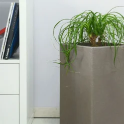 Ce grand pot de fleurs est disponible en plusieurs coloris : gris anthracite, tabac, blanc et gris.