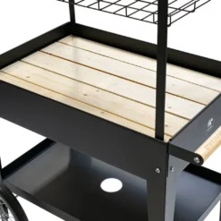 Le potager est fonctionnel et rendra vos sessions jardinage agréables. Vous retrouverez en effet deux étagères : la première sous forme de grille située au-dessus du carré potager, et l’autre en bois se trouvant en dessous. Vous pourrez, grâce à ces dernières, vous débarrasser de vos outils ou déposer vos récoltes.