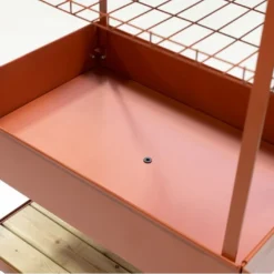 La jardinière surélevée est en acier galvanisé recouvert d’une peinture poudre qui la maintient en éclat face aux intempéries pour une utilisation possible toute l’année. Elle est bien sûr résistante à la rouille. Son bac est conçu de sorte à drainer l’eau superflue grâce à une petite ouverture en caoutchouc.