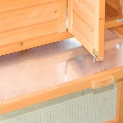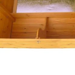 Le poulailler dispose d’une rampe d’accès, de deux perchoirs et trois portes permettant d’accĂ©der facilement aux 2 espaces. Le toit est recouvert d’un feutre bitumĂ©. Les dimensions extĂ©rieures hors tout sont : 227 x 94 x 151 cm (l,l,h). Les dimensions intĂ©rieures au sol sont : 186 x 70 x 151 cm (l,l,h).Â