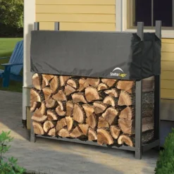 Range-Bûches En Acier Epoxy + Bâche De Protection 0,5 M³