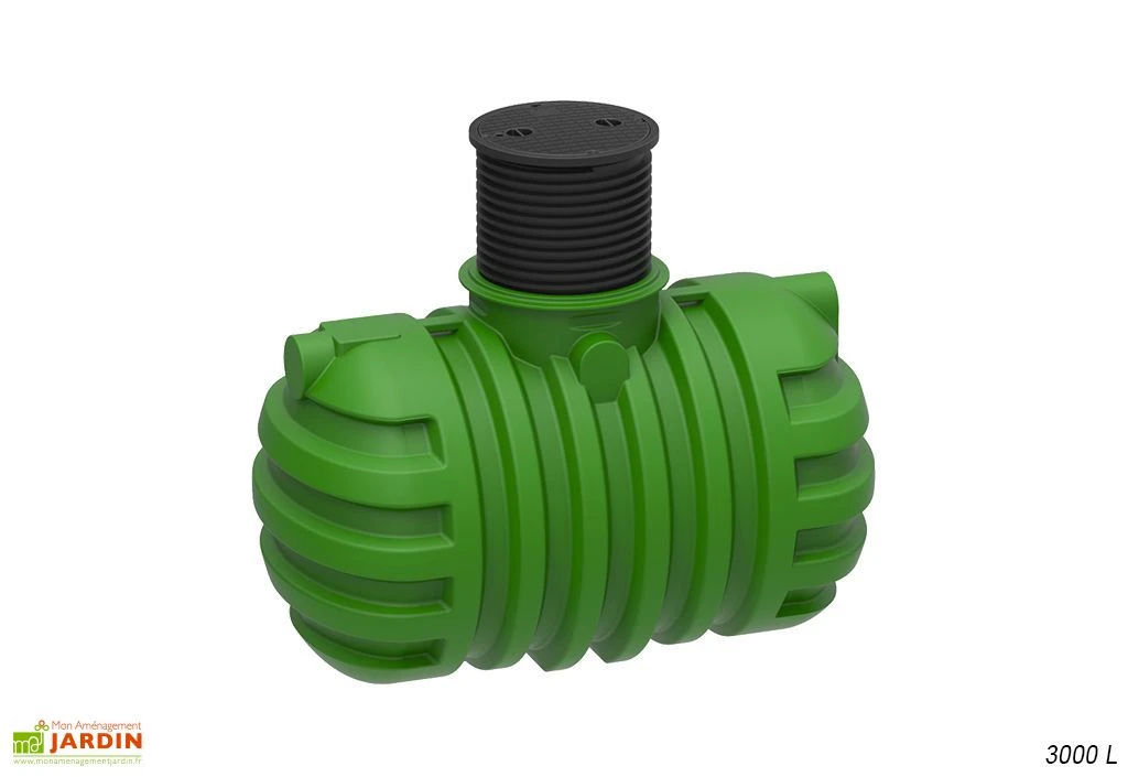 Facile à installer, notamment grâce à son fond plat, ce récupérateur d’eau de pluie devra être enterré non loin de votre maison. Il est fabriqué en polyéthylène moulé, un matériau très résistant et entièrement recyclable. Notez donc qu’une fois enterrée, cette cuve ne craindra pas l’humidité et ne se déformera pas, même après plusieurs années. Sept tailles sont disponibles, selon vos besoins : 2200, 2600, 3000, 3300, 3500, 5000 ou 6000 litres.