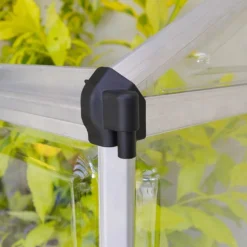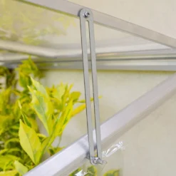 Cette serre adossĂ©e est dotĂ©e d’une structure en aluminium et de parois constituĂ©es de panneaux de polycarbonate transparent. L’aluminium, tout comme le polycarbonate, est très solide et l’avantage de ce mĂ©tal rĂ©side dans le fait qu’il soit insensible Ă la corrosion. Le tout repose sur une base en acier galvanisĂ©. Ces matĂ©riaux rĂ©sistent aux intempĂ©ries et ne demandent aucun entretien particulier.Â