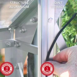 La garantie est de 10 ans sur la structure en aluminium et de 5 ans pour les joints des vitrages.