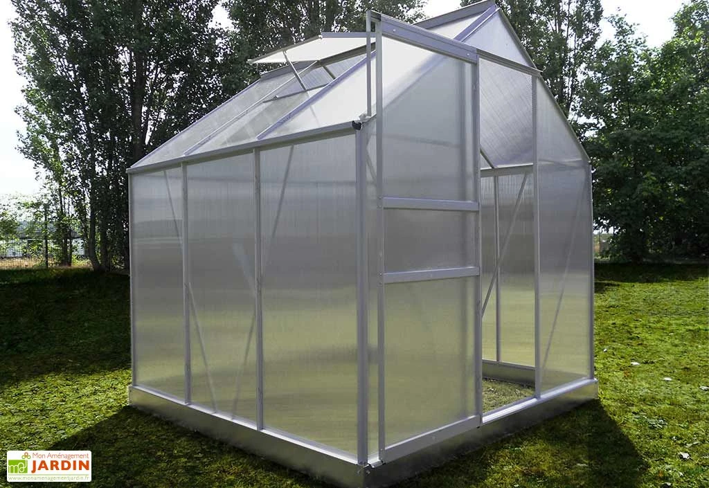 La serre de jardin de chez Chalet-Jardin dispose d’une structure en aluminium anodisĂ© et d’une couverture en polycarbonate alvĂ©olaire. Les parois de la serre mesurent 4 mm d’épaisseur et sont traitĂ©es contre les UV.Â