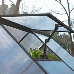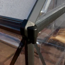 Cette serre de jardin Canopia by Palram comprend une structure en aluminium recouverte d’une peinture grise par poudrage, des parois en polycarbonate cristallin de 0,7 mm d’épaisseur et une toiture en polycarbonate double paroi de 4 mm d‘épaisseur.