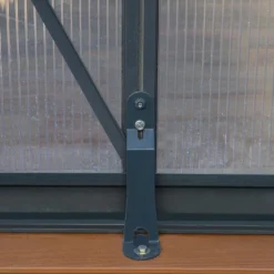 Cette serre Palram-Canopia affiche des dimensions de 2,44 x 4,83 m, soit une surface de 11,78 m². Très solide, elle mobilise une structure en aluminium avec renforts 50 % plus Ă©paisse que sur les modèles standards. Cette structure repose sur une base en acier galvanisĂ©, pour davantage de stabilitĂ©. L’aluminium, l’acier et le polycarbonate ont l’avantage de ne craindre ni les intempĂ©ries, ni la rouille. La serre Glory ne demandera donc aucun entretien particulier.Â