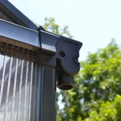 Conçue pour garantir une bonne protection contre une surexposition au soleil et de manière gĂ©nĂ©rale, une isolation parfaite, cette serre de jardin est Ă©quipĂ©e de doubles parois en polycarbonate de 10 mm d’épaisseur. Ces panneaux laisseront passer la lumière tout en filtrant les rayons UV. Ils sont Ă©galement traitĂ©s de telle sorte qu’ils ne jauniront ou ne dĂ©coloreront pas, mĂŞme sans entretien.Â