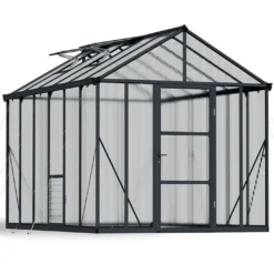 La serre de jardin Glory, signĂ©e Palram-Canopia, affiche des dimensions de 2,44 x 3,64 m, pour 2,68 m de haut. Elle offre donc une surface de 8,88 m² Ă consacrer Ă la culture de vos vĂ©gĂ©taux. Très solide, cette serre est dotĂ©e d’une structure fabriquĂ©e en aluminium et Ă©quipĂ©e de renforts. Cette structure est 50% plus Ă©paisse que sur les modèles classiques et repose sur une base en acier galvanisĂ©. Le tout se montrera insensible Ă la corrosion, et ne craindra donc pas la rouille.Â