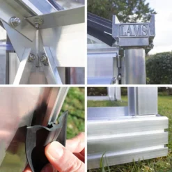 Cette serre de jardin est disponible dans diverses finitions. Trois d’entre elles vous sont proposées : aluminium naturel, aluminium laqué anthracite (RAL 7016) ou vert (RAL 6009). D’autres coloris sont cependant disponibles sur demande (sélectionner « Autre coloris » au moment de passer commande et nous contacter pour nous indiquer le RAL choisi).