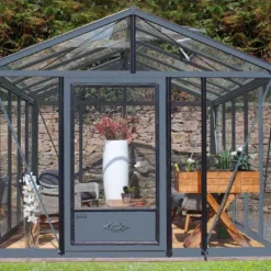 Cette serre vous est proposée dans différentes finitions : aluminium naturel, aluminium laqué anthracite (RAL 7016) ou vert (RAL 6009). D’autres coloris sont également disponibles sur demande (sélectionner « Autre coloris » au moment de passer commande et nous contacter pour nous indiquer le RAL choisi).