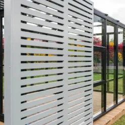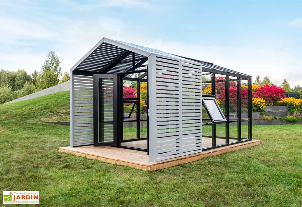 Elle comprend également des panneaux occultants en bois sur l’avant de la structure. Ces panneaux, en plus d’offrir un design original à la serre de jardin, permettent d’apporter de l’ombre. Comme pour la structure, ces panneaux sont fabriqués en pin et vous pouvez choisir leur couleur, indépendamment de celle de la structure.
