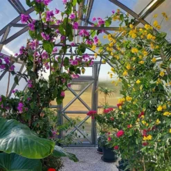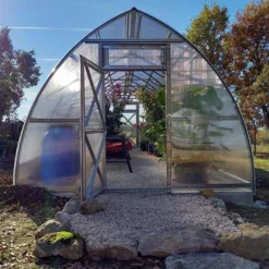 Les vitres de la serre sont composées de panneaux en polycarbonate à double paroi de 6 mm d’épaisseur. Elles confèrent une bonne isolation thermique à l’ensemble de la serre, ce qui lui permettra d’accueillir vos plantations dans un climat propice à leur développement.