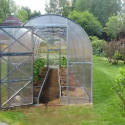 Les vitres de la serre sont composées de panneaux en polycarbonate à double paroi de 6 mm d’épaisseur. Elles confèrent une bonne isolation thermique à l’ensemble de la serre, ce qui lui permettra d’accueillir vos plantations dans un climat propice à leur développement.