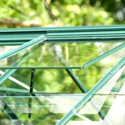 La serre de jardin Laurus de Lams est une serre en verre trempé disposant d’une structure en aluminium recouverte d’un laquage vert. Les panneaux de verre trempé mesurent 3 mm d’épaisseur. Les panneaux sont en verre securit, un verre qui se brise en tout petits morceaux qui ne coupent pas, en cas de choc.