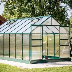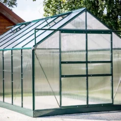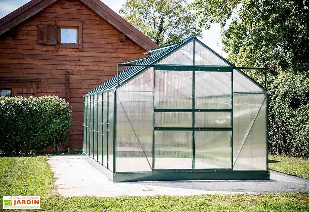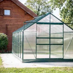 Votre serre de jardin de chez Habrita mesure 244 x 425 x 223 cm (l,l,h) pour une surface de 10,37 m². Elle est constituĂ©e d’une structure en aluminium anti-corrosion vert et de panneaux de polycarbonate 6 mm anti-UV.