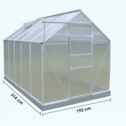 Votre serre possède une porte coulissante de 0,60 x 1,60 m (l,h) ainsi que deux lucarnes de toit manuelles assurant la ventilation intĂ©rieure de la serre. Votre serre de chez Habrita mesure 1,92 x 3,14 x 2,08 m (l,l,h), pour une surface utile de 6,03 m². Votre serre inclut une embase. La garantie est de 5 ans contre une dĂ©formation de la structure et 2 ans sur le polycarbonate.Â