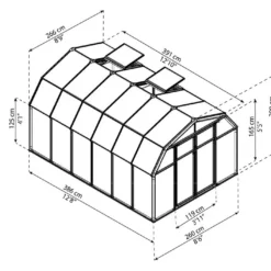 La serre en polycarbonate mesure 3,91 m de profondeur pour 2,66 m de largeur et 2,08 m de hauteur, soit une surface de plus de 10 m². Elle dispose d’une toiture Ă la forme originale qui offre une grande hauteur sous plafond et un confort de travail supplĂ©mentaire. Sa grande double porte mesure 119 x 165 cm (l,h). Elle est montĂ©e sur charnières et sa largeur permet d’entrer et sortir des objets volumineux.Â