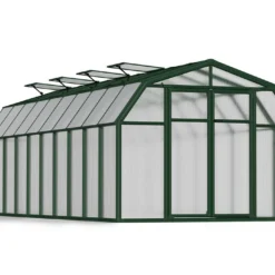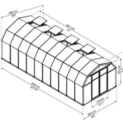 La serre de jardin Hobby Gardener 8×20 de chez Palram-Canopia mesure 6,41 m de longueur, 2,66 m de largeur et 2,08 m de hauteur soit une surface de plus de 17 m². Elle dispose d’une structure en PVC vert qui offre une excellente rĂ©sistance face aux agressions extĂ©rieures en ne craignant ni la moisissure, ni la corrosion, ni l’attaque d’insectes. Elle ne demande donc aucun entretien.Â