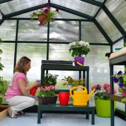 La serre en polycarbonate est livrée en kit. Elle se monte facilement grâce à une notice de montage détaillée, à des profils uniformes et à un système d’emboitement des connecteurs. La garantie est de 7 ans.