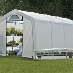 La grande serre de jardin Shelter Logic mesure 3 m de largeur, 6,10 m de longueur et 2,40 m de hauteur et dispose d’une surface de 18,3 m². Elle est idéale pour une utilisation uniquement pendant une partie de l’année puisqu’elle se monte et se démonte facilement et rapidement. Elle vous permet ainsi de libérer l’espace dans votre jardin les mois où vous n’en avez pas besoin.