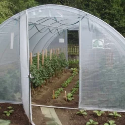 Cette serre tunnel de chez Tonneau est en polyéthylène transparent de 200 microns d’épaisseur. Son armature en acier galvanisé lui garantit une longévité importante. Dans vos options vous pouvez choisir une serre sans aération ou une serre avec aération (kit manivelles inclus pour l’option aération). Lorsque vous choisissez l’option aération, la serre est équipée d’une ventilation de côté jusqu’à 70 cm. La serre dispose d’une porte pivotante d’une largeur de 1,35 m, il est possible d’en ajouter une deuxième en accessoire.