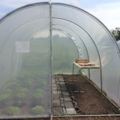 La serre tunnel de grande qualité, fabriquée en France, dispose d’une bâche avec ourlets et corde, qui lui confèrent une tension parfaite. La sortie de la corde est renforcée par une soudure à chaque ourlet. L’habillage des pignons est en polyéthylène translucide d’une épaisseur de 200 microns, livré avec une protection PVC armé pour les clips de tension. Les tablettes ne sont pas incluses.