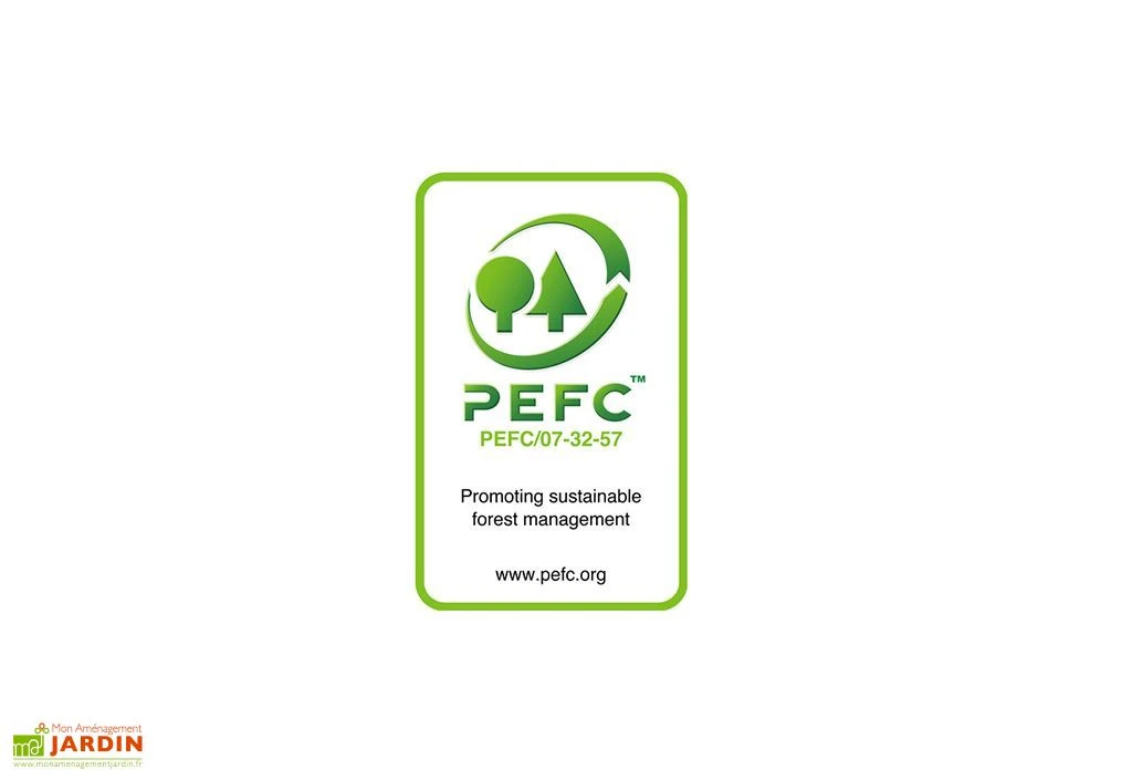 L’abri est livré sans plancher et doit être posé sur une dalle en béton. Si vous souhaitez le compléter, le plancher est vendu séparément dans vos accessoires. La garantie est de 2 ans. Le bois est certifié FSC C009853 et PEFC 07-32-57.