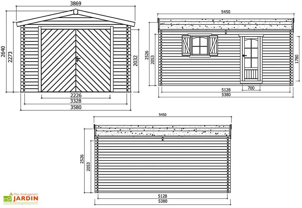La surface Ă peindre est de 45,2 m². Les dimensions du garage sont : 358 x 538 x 264 cm (l,l,h) pour une surface extĂ©rieure au sol de : 19,26 m². La surface intĂ©rieure est de : 17,07 m² soit 512 x 332 cm (l,l) et la surface hors tout est de : 21,09 m². L’inclinaison du toit est de 12°, il est recouvert d’une toile bitumĂ©e sur laquelle vous pourrez, si vous le souhaitez, poser des bardeaux bitumĂ©s (shingles). Ce garage nĂ©cessite neuf lots de shingles pour recouvrir l’entièretĂ© du toit. Vous les trouverez dans votre rubrique accessoires (sous le visuel).Â