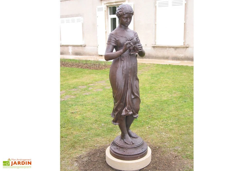 La statue de chez Dommartin représente une femme raffinée. Elle est en fonte et ne demande aucun entretien. Elle s’installe aussi bien à l’intérieur qu’à l’extérieur. La statue mesure 1,70 m de hauteur. Elle possède de beaux détails que ce soit dans les cheveux ou sur la robe. La statue est proposée en brun antique. Elle est fabriquée en France. La fonte est garantie à vie.