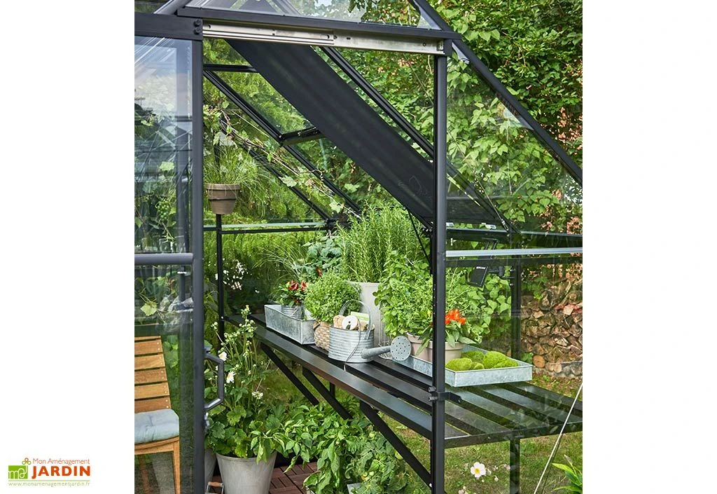 Avec des dimensions de 64 x 182 cm, cette table de culture vous offrira suffisamment d’espace pour préparer vos semis ou rempoter vos plantes. Facile à installer, elle est pensée pour être intégrée à l’intérieur de la serre en la fixant directement sur les parois, ce qui permet d’économiser de la place au sol.Â
