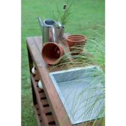 Votre table de prĂ©paration Choko de chez Jardipolys d’une dimension de 1,29 x 0,45 x 0,90 m (l, l, h), est un espace idĂ©al pour jardiner de manière confortable sans fatiguer votre dos. Grâce Ă elle, tous vos outils sont Ă portĂ©e de mains. Vous pourrez rempoter et prĂ©parer vos boutures et vos semis sur son grand plan de travail dotĂ© d’un bac Ă rempoter en zinc. Ce bac mesure 40 x 30 cm (longueur, largeur), sur 8 cm de hauteur.