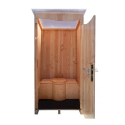 Cette cabine pour toilettes sèches équipée dispose de dimensions de 120 x 105 x 215 cm et s’intégrera parfaitement dans votre jardin ou verger. L’habillage de ce cabinet est en bois douglas ou épicéa selon votre préférence et est disponible en version brute, à vernir soi-même, ou en version lasurée prête à l’emploi.