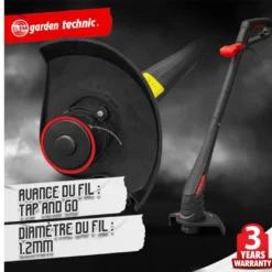 Idéal pour les finitions d’après tonte ou pour se débarrasser des mauvaises herbes, le coupe bordures possède une largeur de coupe de 22 cm. Son système Tap and Go permet de profiter d’une longueur de fil toujours optimale (diamètre du fil : 1,2 mm) et une seconde bobine de fil vous sera par ailleurs fournie. Léger et facile à prendre en main, ce coupe bordures électrique de 250 W vous assurera un bon confort de travail.